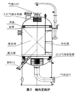 變換爐是合成氨工廠生產(chǎn)一氧化碳工段的一個(gè)核心的必備的設(shè)備,變換爐的結(jié)構(gòu)能否滿足工藝要求與計(jì)算設(shè)備、可靠性直接影響到產(chǎn)量、能耗、轉(zhuǎn)化率、觸媒用量和投資費(fèi)用等。變換爐的結(jié)構(gòu)隨著現(xiàn)代技術(shù)的發(fā)展和現(xiàn)代氨生產(chǎn)量需求一直在不斷的發(fā)展中。